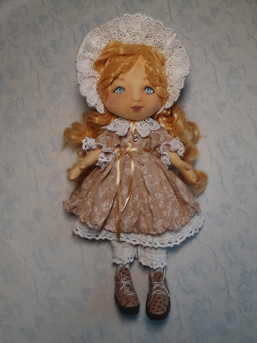 Приветствую всех вошедших в мой блог! Итак, на фото мой эскиз будущей куклы и готовый вариант .Есть , конечно, изменения, но основные черты сохранены. Я не стала рассказывать как расписать личико, этот мастер-класс есть в моем блоге.Ничего не изменилось, я действую по старому плану, как привыкла. Но вы можете делать так как удобно вам. А с одеждой вот какая история- все выкройки снова сделала обклеив куклу малярным скотчем. Обрисовала карандашом и вырезала. Приклеила на лист бумаги и вырезала. Приложила к кукле и подкорректировала. Юбочка - просто лоскут ткани размером 10 на 40 см нижняя и 8 на 45 верхняя. А боннет это лоскут ткани с закругленными краями стянутый на нитку сзади. Все швы я прикрыла кружевом. По панталончикам кружево в 2 ряда. Чтоб юбочка была смятой нужно после обработки края зиг-загом и пришивки кружева по низу прошить самым широким шагом и верх и низ и стянуть. Расправить аккуратно все волны и смочить водой. Я еще и ниткой крепкой обматываю поперек лоскута. Фиксирую ч