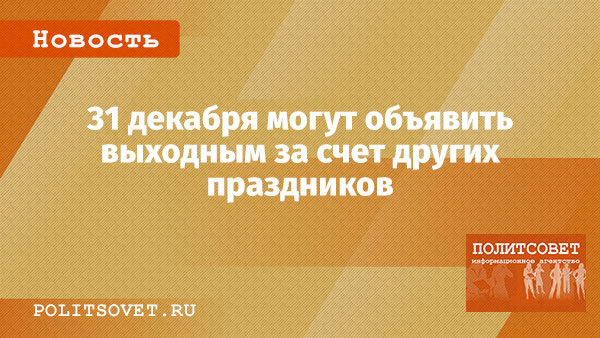 Правительство России может объявить 31 декабря выходным днем, но ради этого придется пожертвовать каким-то другим праздничным днем.