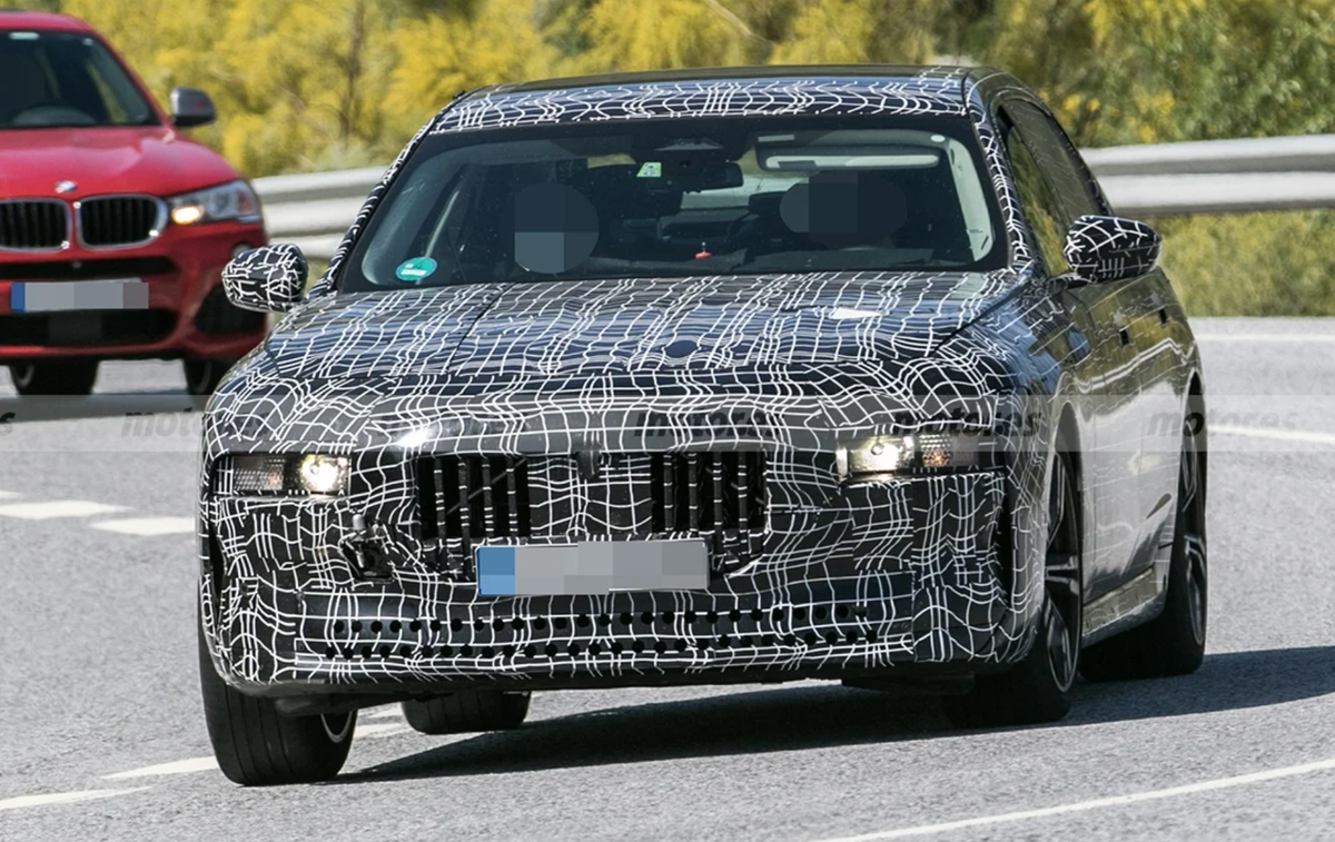 На днях выложили в сеть снимки прототипа модели 7-Series, которую вывели на тестовые заезды в Нюрбургринге. Закамуфлированный BMW 7 Series скрывает большую часть своего нового стиля оформления, но дает пару намеков на будущие изменения дизайна по сравнению с нынешним автомобилем. При более внимательном рассмотрении передних крыльев можно обнаружить небольшие камеры, которые, вероятно, предназначены для системы мониторинга слепых зон и / или частью сложной полуавтономной системы вождения. Несмотря на камуфляж, понятно, что седану достанутся новые дверные ручки — уже не под естественный хват, а подъемные. Спереди и сзади пока что установлены «временные» фары и стопаки. Кроме того, имеются четырехканальные выхлопные патрубки, скрытые вырезом в бампере. В боковые окна автомобиля видно, что интерьер выглядит не законченным. Это говорит лишь о том, что работы по созданию новинки продолжаются и до проведения финальных тестов пока далеко. А значит, говорить о дате торжественной презентации мо