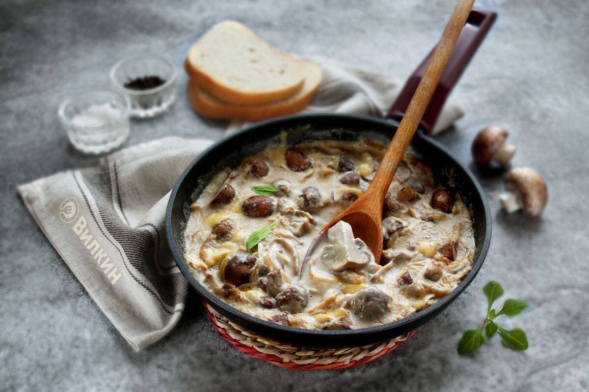 Простой рецепт на каждый день! всем привет мои читатели сегодня готовлю блюдо которое я называю жюльен на сковороде нежное куриное филе с шампиньонами все это протушивается в сливках да еще и посыпается сыром не знаю кому это может не понравиться я это блюдо готовлю для всей семьи часто, расскажу и вам рекомендую дочитать до конца давайте готовить вместе сковороду разогреваем с небольшим количеством растительного масла буквально 2 столовые ложечки и теперь нарезаем куриное филе небольшими кусочками я делаю на два филе можете делать на одну зависимости от такую сколько у вас человек в семье вот нам на троих хватит и двух филе выкладываем мясо на сковороду пока обжаривается мясо, мелко нарезаем лук отправляем лук сковороду теперь все перемешиваем пока что можно накрыть крышкой и сейчас будем нарезать грибы, нарезаем грибы по желанию можно крупно можно мелко как вам больше нравится я нарезаю такими достаточно крупными кусочками для 2 филе мне достаточно 300 грамм грибов филе