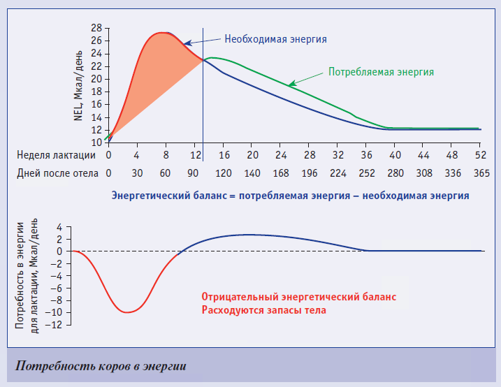 Поддержание оптимального уровня энергии в организме животного особенно важно в сухостойный период, за 14–21 день до предполагаемого отела и после него. Повышение энергетической ценности рациона стель- ных сухостойных коров в последние 2–3 недели перед отелом положительно влияет на микрофлору и слизистую рубца, способствуя усвоению большего объема корма (в том числе концентратов) в новотельный период. Во время перехода от стельности к лактации в организме коров происходят кардинальные нарушения обмена веществ, что требует соответствующей корректировки программы кормления.