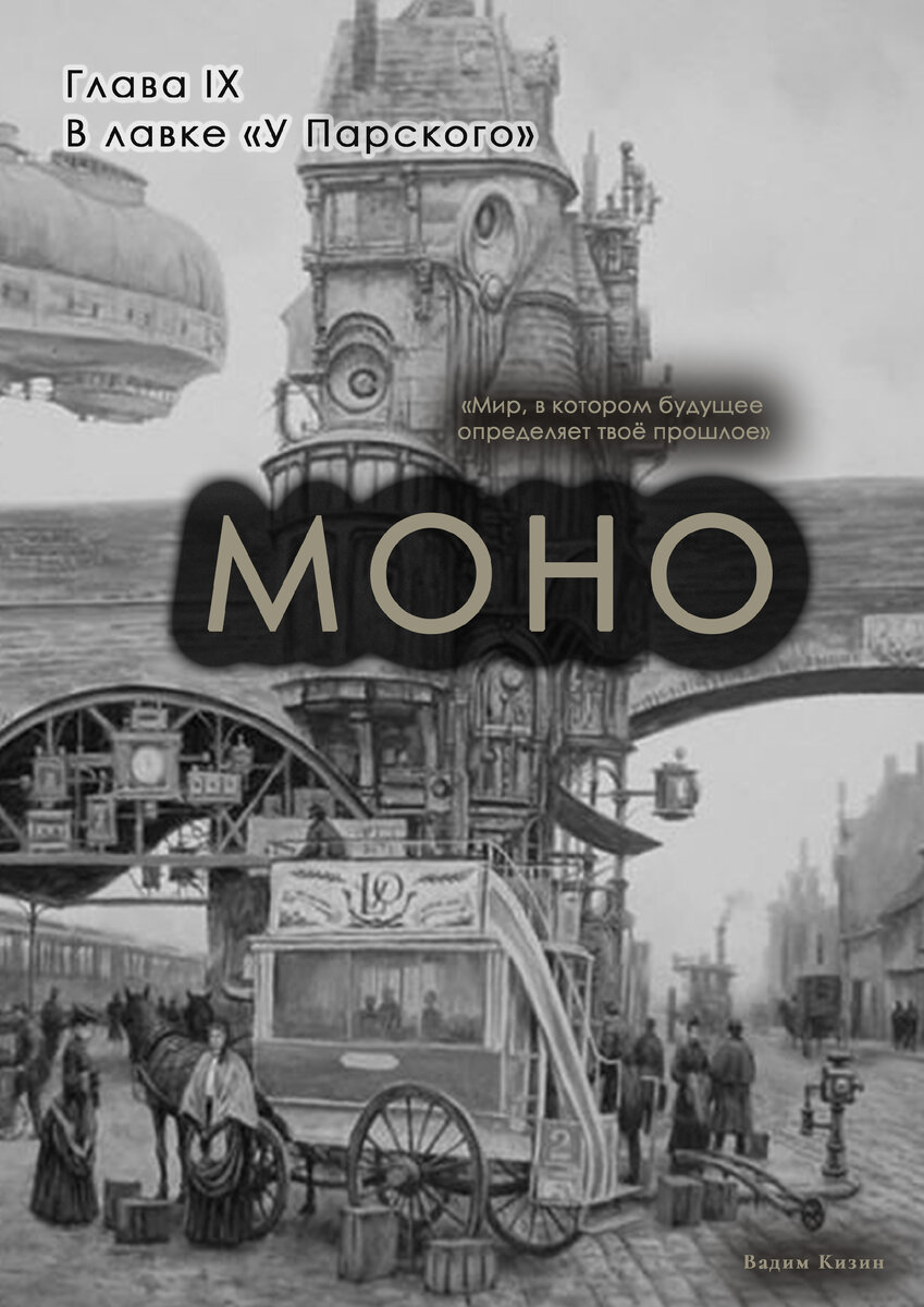 «Кто не бывал у Парского, — тот не ценит прогресс!»— крылатое выражения для всех тех, кто хоть раз обращался сюда за помощью по ремонту монокля. «Нужна новая оправа?»— не проблема! «Нужно новое стекло?»— не проблема! «Циферки потёрлись?»— нарисуем новые! «А ещё— не соизволите ли получить чашечку песчаного кофе, пока ожидаете в холле?». Мастерскую в стиле антикварного бара содержал Лаврентий Парский, с тех пор как начал работать слесарем на одном из заводов МОНОЛЭНДА, когда воздух был чуточку чище, а солнце — чуточку ярче. Каким-то волшебным образом он унаследовал чайный ларёк, после чего переделал его в мастерскую. Лаврентий очень любил собирать различные механические детали: он конструировал будильники, часы и даже компасные очки, реагирующие на времена суток. С тех пор как монокли вошли в моду, — это стало временем триумфа. Каждому хотелось подчеркнуть свой статус и свой стиль. Очень большой популярностью пользовалось «красное стекло» — оно защищало от солнечный лучей и помогало видеть свое отражение в случае необходимости. В этот раз Велимир решил сменить дисковую насадку — за это время она несколько потёрлась, из-за чего некоторые цифры и линии были не видны. Она была создана из пластмассового материала для придания лёгкости. Но, разрешалось сменить её только на что-то более крепкое и долговечное. Например на тот же «титаниум» или «фрамий». Велимир решил прокатиться на гидравлическом такси, так как мастерская находилась на другом конце города; у него было несколько пар свободных часов, которые надо было чем-нибудь занять и выпить чашечку свежего кофе.