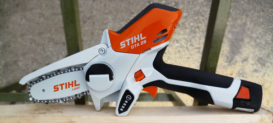 Универсальный аккумуляторный сучкорез STIHL GTA 26. Инновационный агрегат, подобно маленькой ручной пиле, подходит как для обрезки деревьев и кустарников, так и для точной работы в строительстве и конструировании предметов из дерева.