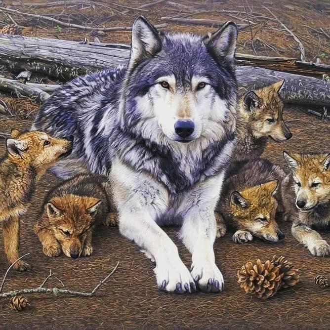Удачная на днях была охота, легко нашел я логово волков, волчицу сразу пристрелил я дробью, загрыз мой пес двоих ее щенков. Уж хвастался жене своей добычей, как вдалеке раздался волчий вой, но в этот раз какой-то необычный, он был пропитан горем и тоской. А утром следующего дня хоть я и сплю довольно крепко, у дома грохот разбудил меня, я выбежал в чём был одет за дверку, картина дикая моим глазам предстала у дома моего. Стоял огромный волк, пес на цери и цепь не доставала, да и наверное не смог бы он помочь а рядом с ним стояла моя дочь и весело с его хвостом играла, не чем я в этот миг не мог помочь, а что в опасности она не понимала. Мы встретились с волком глазами, глава семьи той сразу понял я, и только прошептал губами не трогай дочь убей лучше меня, глаза мои наполнились слезами, и дочь с вопросом. -Папа что с тобой ?, оставив волчий хвост тотчас же подбежала, прижал ее к себе одной рукой, а волк