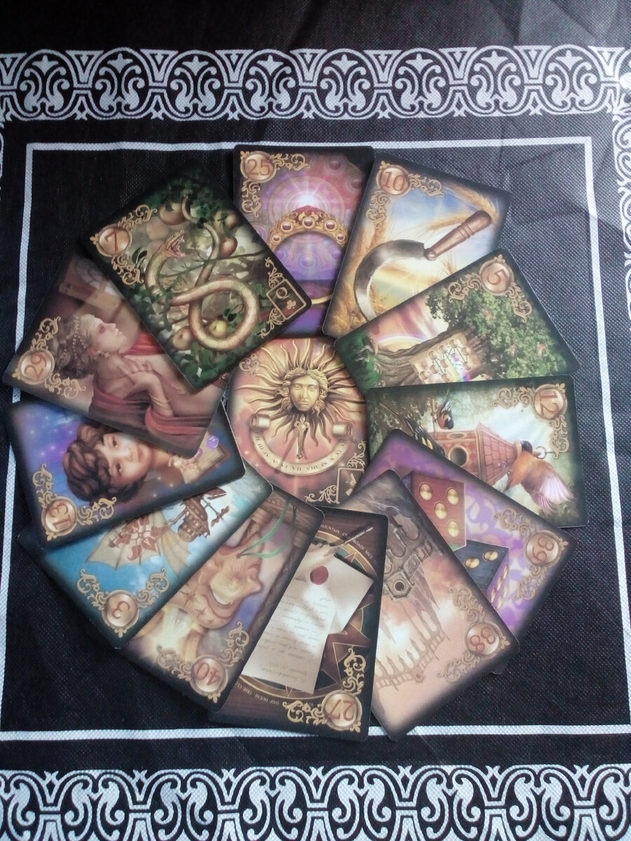Для тех, кто не знает, объясняю - некоторые карты Ленорман соответствуют определенным знакам Зодиака, поэтому я их выкладываю в середине расклада.