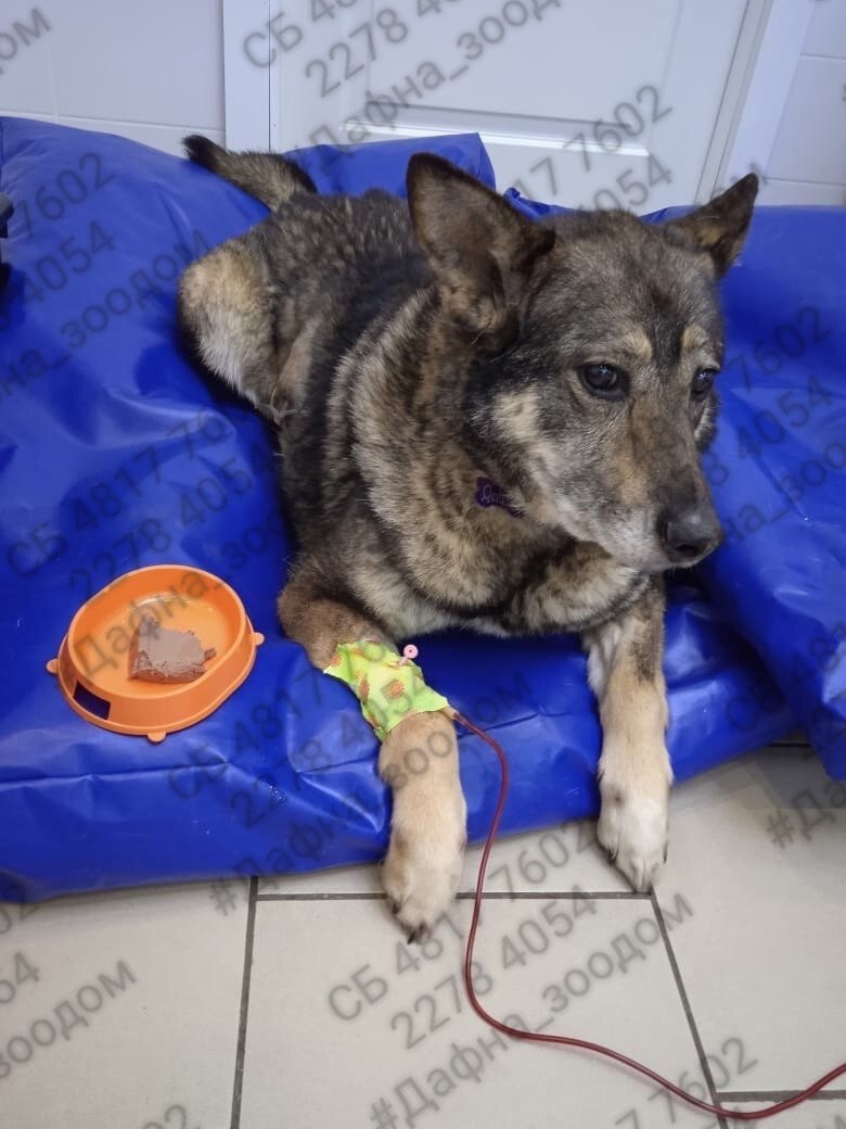 Иногда, чтобы на тебя обратили внимание, приходится пройти огонь, воду и медные трубы. За последний месяц событий в жизни Дафны было столько, сколько не было за всю её жизнь. Она покаталась на разных машинах, побывала в нескольких городах и даже оказалась в лифте. Познакомилась с большим количеством людей, некоторые из которых делали с ней неприятные и болезненные вещи, при этом Дафна не проявила даже малейшего намека на агрессию, была терпелива, послушна, делала все, как ей велели. Такое очень редко, но всё же случается с приютским собаками, потому что нет в их жизни Хозяина. Любящий хозяин каждый день гладит собаку, общается с ней и любое изменение заметит очень быстро. В случае с приютской собакой нужно надеяться, что кто-то случайно заметит проблему. Тем более если собака пуглива, её стараются лишний раз не тревожить, аккуратно выводят с опытным куратором и понемногу приучают к людям. Поэтому на боку Дафны заметили припухлость не сразу. Один укус соседа в неправильное место, ушед