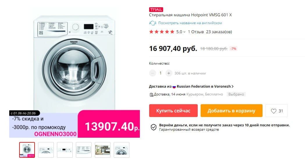 Стиральная машина Hotpoint VMSG 601 X за 13907₽ с промокодом: OGNENNO3000 на AliExpress Tmall. Загрузка белья до 6кг, скорость отжима 1000 об/мин, габариты 59.5 см x 85 см x 43.5 см, уровень шума при отжиме 79 дБ. Станет отличной помощницей в доме. Везде от 16990₽.