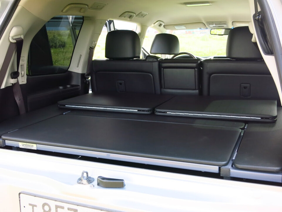 Итак, спальник готов, прибыл на место и водружён в Двухсотку. Что мне понравилось в машине — простота и симметричность обшивок багажника. Правая и левая боковушки абсолютно зеркальны! Такая симметрия есть только в 70ке да в Патриоте :) Даже у 80ки правая и левая обшивки различаются. "Где хранить запасные ножки?" Такого вопроса в 200ке не возникает. Мы заранее согласовали с главным инженером Тойоты размеры бардачка :) Изнанка наших спальников всегда светлая. Некоторые читатели спрашивают — "Почему? Это же непрактично..."
