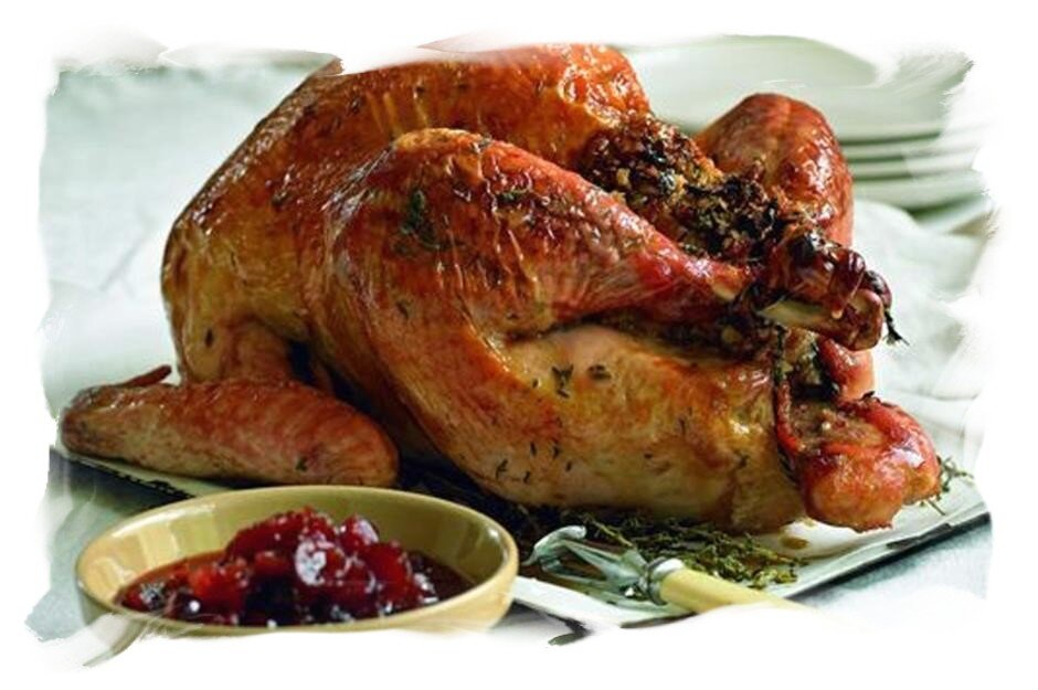 1 — 1,5 кг индейки, 20 г молока, 40 г мякиша черствого хлеба, 3 яйца, 150 г вареной колбасы, 3 г чеснока, 30 г жира, 400 г белого вина, 400 г сметаны, 100 г какао, соль, 1 апельсин. Потрошат и хорошо промывают индейку. В небольшом количестве молока замачивают мякиш черствого хлеба. Мелко нарезают лук и пассеруют в небольшом количестве жира. Туда же добавляют замоченный хлеб, яйца, мелко нарезанную вареную колбасу, соль по вкусу и мелко нарезанные дольки чеснока. Хорошо размешивают начинку и фаршируют индейку. Тщательно зашивают отверстие в брюшке. Кладут фаршированную индейку на противень с небольшим количеством жира и жарят в духовке, переворачивая и поливая какао. Вынимают готовую индейку и ставят в теплое место. На противень, где жарилась индейка, наливают белое вино и прибавляют сметану, смешанную с какао. Ставят соус на огонь и варят, пока его количество не уменьшится вдвое. Заливают индейку соусом и украшают кружочками апельсина или лимона.
