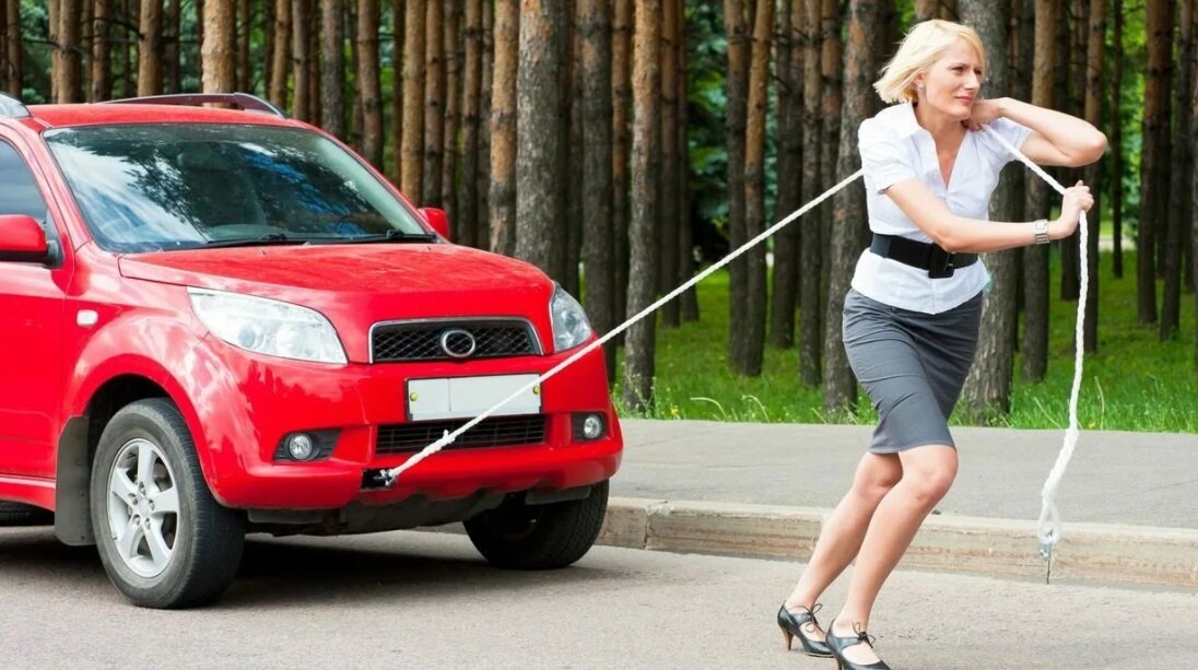 Как завести автомобиль в одиночку с помощью троса, если сел аккумулятор