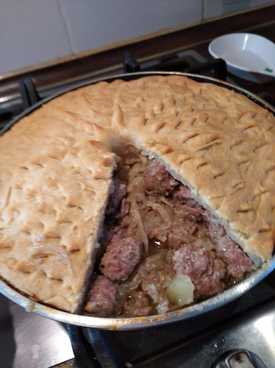 Пирог с фрикадельками в сковороде. Этот пирог делается в чугунной сковороде или в круглой форме для запекания. Вкусно, красиво, сытно, просто.