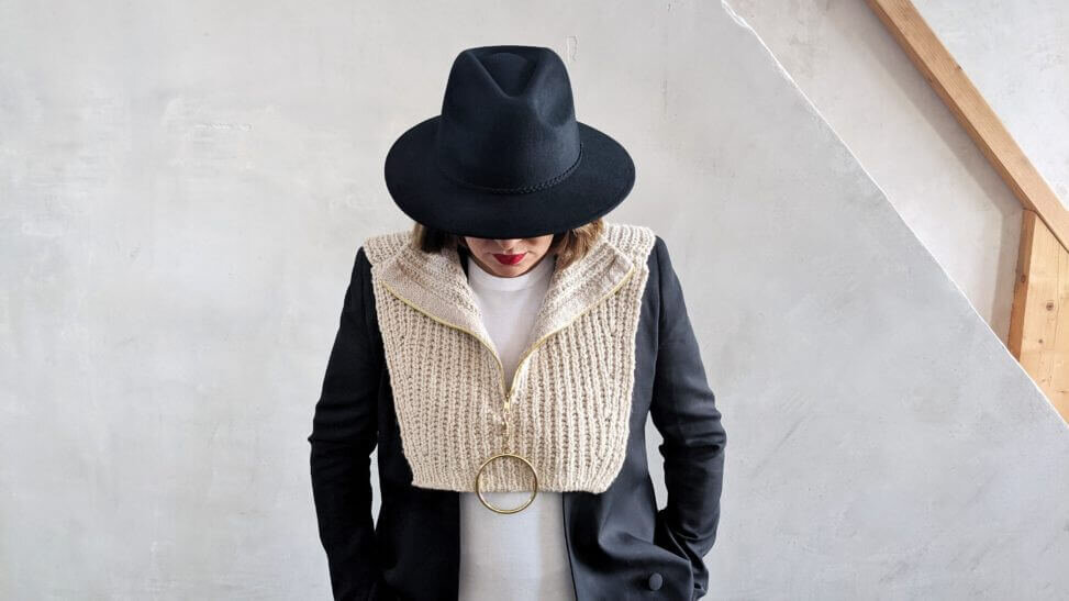 Женская манишка очень актуальна в этом году, поэтому предлагаем связать эту простую и стильную манишку на молнии полупатентной резинкой. Этот аксессуар чрезвычайно практичен, если вы носите под пальто легкую одежду и не хотите выглядеть слишком громоздко. Она выглядит как свитер с высоким воротом и сохраняет шею в тепле. В образах Street Style можно также увидеть манишку поверх плаща или блейзера. Подготовка к вязанию женской манишки с молнией Размер: one size. Данный проект состоит из двух частей - спинки и переда. Ширина спинки около 40 см, длина - 34 см, она вяжется прямо до плеч, воротника также вяжется прямо. Перед короче спинки на несколько см и сужается к низу. По центру воротника есть вырез, в который вшивается молния. Застежка-молния с изнанки обшивается дополнительной вязаной деталью. Вам понадобится: Плотность вязания: 23 петли x 28 рядов = 10 x 10 см - спицами 5 мм. Описание вязания женской манишки с молнией Спинка Для спинки нам понадобится нечетное количество петель