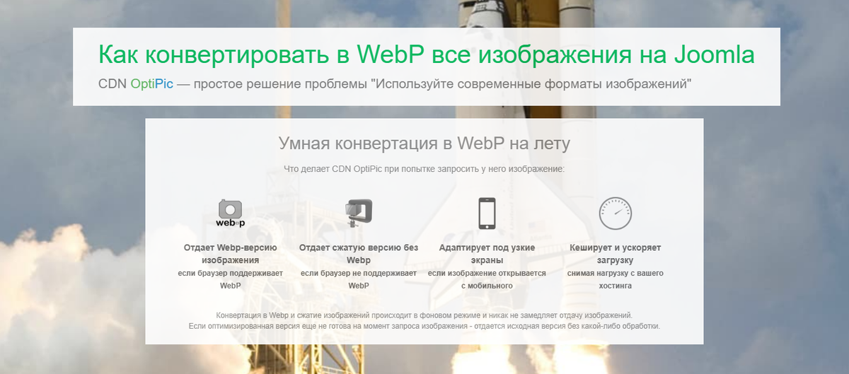 Оптимизация изображений webp joomla происходит поэтапно. На первом этапе плагин выполнит конвертацию файлов, передаст пользователям изображения WebP. Плагин может отдавать старую версию изображения в старом формате, если браузер не поддерживает WebP. Также картинки могут адаптироваться под экраны смартфонов. Потом выполняется кеширование, предназначенное для ускоренной загрузки изображений. Веб-ресурс быстрее работает, а хостинг меньше грузится.
