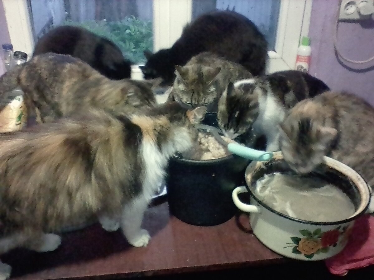 Домашний мини-приют "Рыжий кот" по прежнему нуждается в помощи, кажется, что светлое будущее наступит нескоро. Хвостатая орава: восемь десятков брошенных животных живут во дворе волонтера... В приюте 81 животное, все хотят есть, волонтер бы даже сказала жр-ть, не наедаются, основное меню каша перловая, потому что варится и не пригорает, мешать стоять не нужно, некогда, субпродукты. Благодарим всех, кто нам помогал и продолжает нас поддерживать!!! В настоящее время дела наши не поправились, никак не вылезти из нужды. В марте у нас поломался водонагреватель, на 4х мастеров ушло 8000, бак так и не работает. Последний консультант сказал, что все дело в котле, через который идет вся вода, там поржавел змеевик и гоняет воду по системе. Ну, если короче, то мы остались и без отопления, новый котел стоит 24 000. На приют уходит 40 000 в месяц только на еду, здесь и ЗП и бабушкина пенсия и помощь. Это без стерилизации, вакцины и лечения больных. Заболела Салли, старенькая кошка, кашляет и тяжело