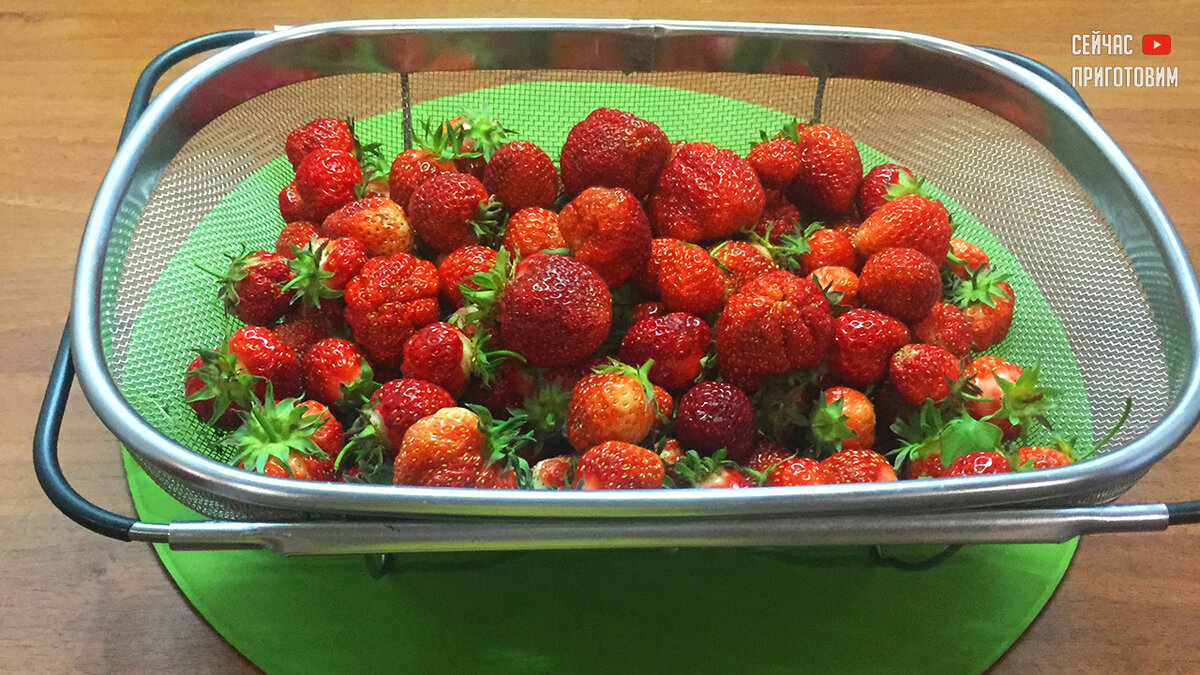 Клубнику тщательно вымойте ягоду, лучше делайте это под проточной водой и отбросьте ее на сито.