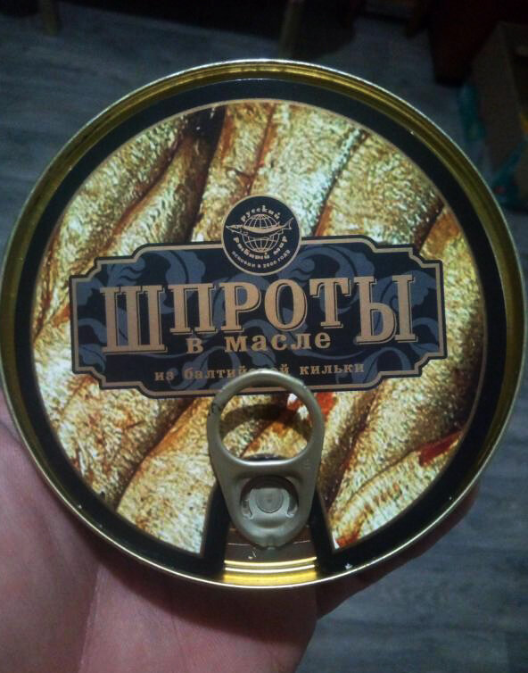 Ох уж эти гастрономические эксперименты… Итак, друзья, сегодня предлагаю провести такой мини-обзорчик на шпроты из “Светофора” по очень привлекательной цене - всего лишь за 27,90 рублей! Скажу честно: шпроты покупаю не часто и вообще предпочитаю выбирать их тщательным образом, но в этот раз любопытство взяло верх и я решила: ну, наверное, если продают, то с качеством всё должно быть в порядке? Тем более, что не так давно ненароком увидела, как мужчина чуть ли не всю корзину заполнил этими шпротами - ну, не для котов же он их набирал. В общем - взяла. Придя домой, стала изучать этикетки. Оказалось, что производят их где-то в Москве, а сама компания называется “Русский рыбный мир”. Пошла я, значит, гуглить отзывы про эту организацию и неприятно удивилась. 90% отзывов вместили в себя злость, обиду и негодование от качества продукции сего чуда. Причём не только от шпрот. Но долой предвзятость, оценим конкретно этот продукт! Итак, на первый взгляд всё в порядке - рассол, прилично выглядяща