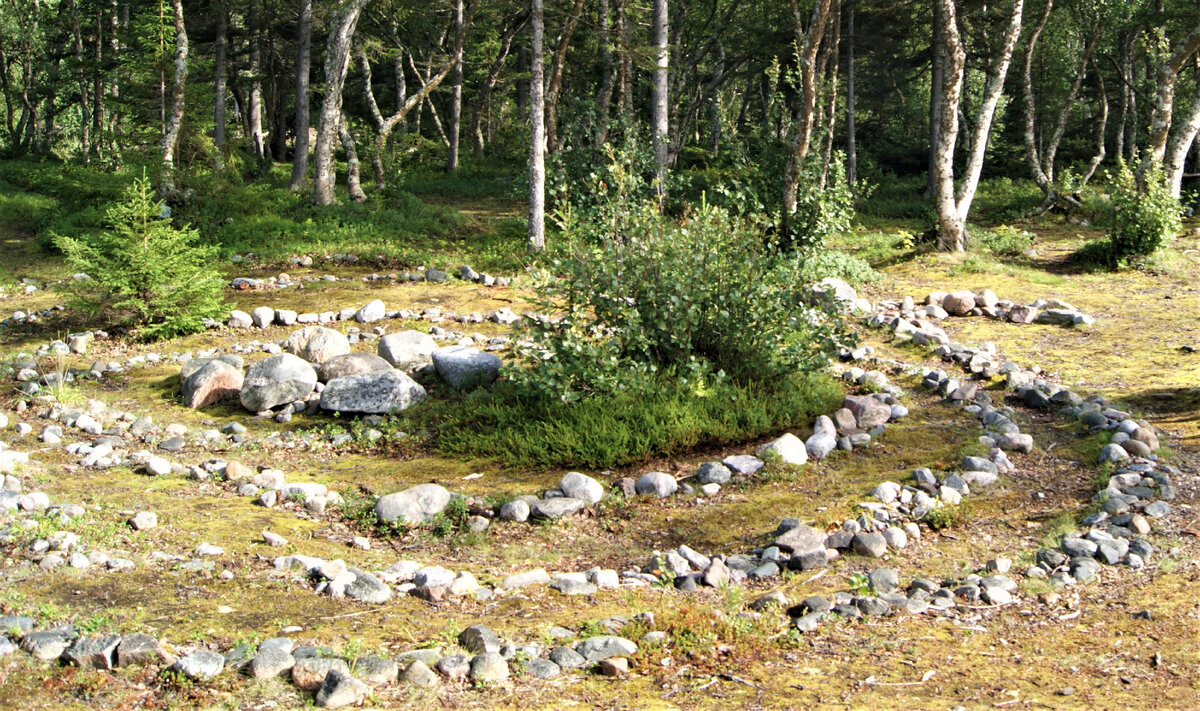 На эти вопросы не могут дать точного ответа даже учёные - историки и этнографы. Я просто расскажу об этих странных сооружениях и покажу, как они выглядят. На Соловецком архипелаге насчитывается около 35 каменных лабиринтов, из них 13 находятся на Большом Заяцком острове. Остров небольшой, всего 1,5 кв.километра. Лабиринты представляют собой выкладки из местных валунов, уложенных рядами. Формы лабиринтов различные - в виде простых или двойных спиралей, подковообразные, круглые. Диаметр лабиринтов от 3,4 до 25,4 метров, размеры камней 30-40см. Все эти разнообразные сооружения объединяет одна деталь - выход из лабиринта там же, где вход. То есть, если зайти в лабиринт и пройти по рядам камней, неизменно окажешься в начальной точке. Никаких тупиков в лабиринтах нет. Время прохода по лабиринту, в зависимости от его размеров и формы составляет от 5 до 30 минут. Впрочем, ходить по лабиринтам сейчас запрещено, отчего все они покрыты растительностью. Листайте галерею: Для сохранности