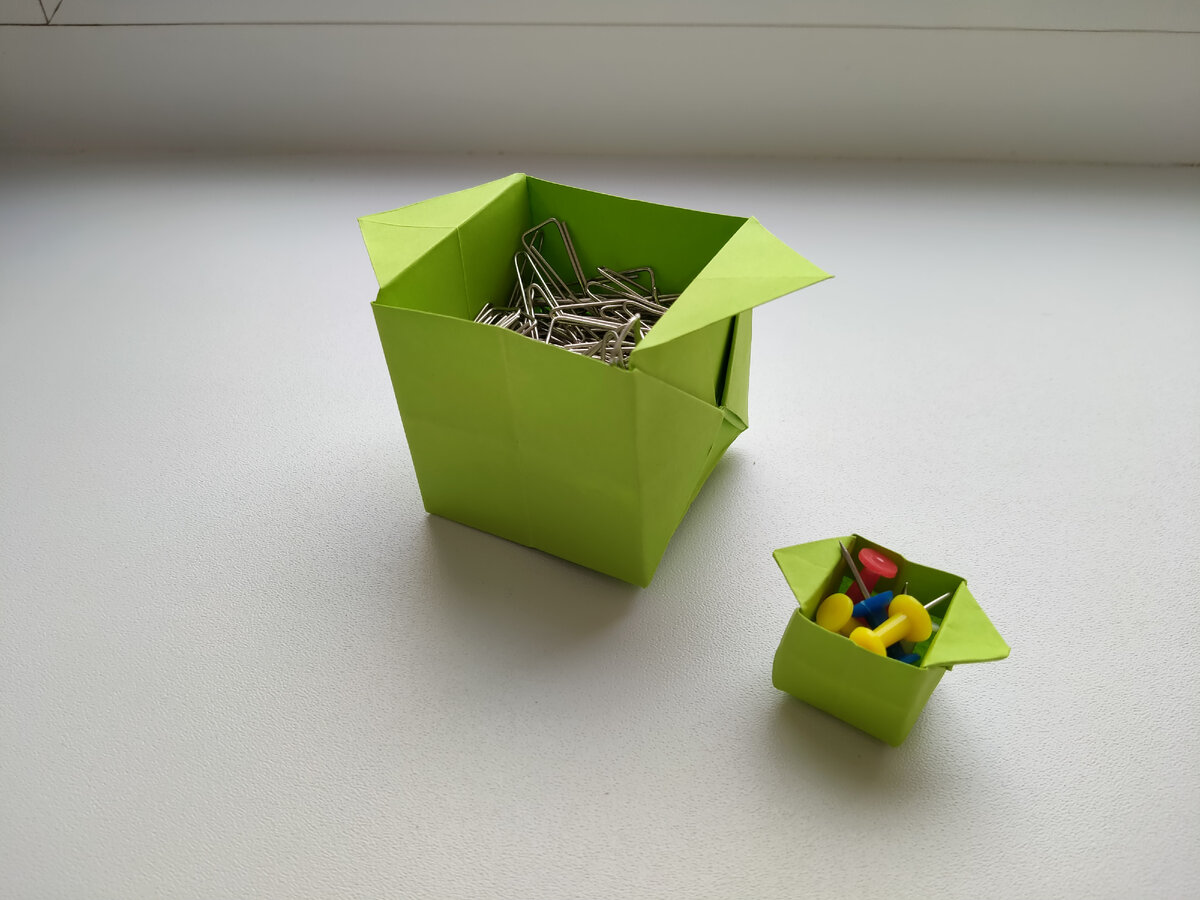 Сложность: 3/5 Время создания поделки: 10-15 мин 1. Берём лист А4 и складываем его, как на фото 2. Отрезаем лишнее и открываем 3. Делаем два сгиба, чтобы получились складки, как на 4 фото 4. Делаем 4 сгиба к центру и опять открываем 5. Сгибаем верхнюю и нижнюю часть, как на фото 6. Складываем пополам справа налево. Дальше складываем пополам сверху вниз 7. Открываем конструкцию так, чтобы получилось, как на втором фото. Переворачиваем и делаем тоже самое с другой стороны 8. Разворачиваем так, чтобы внутренние части отказались снаружи 9. Сгибаем правую и левую часть к центру и делаем также с другой стороны 10. Подгибаем правый и левый угол к центру с двух сторон 11. Просовываем верхние уголки в отверстие под ними 12. С двух сторон сгибаем верхнюю и нижнюю часть к середине и отгибаем обратно, чтобы получились складки 13. Открываем и засправляем поделку. Готово! Также рекомендую статью о том, как сделать журавля из бумаги