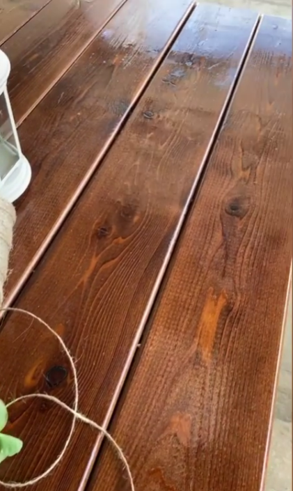 Распилили 3х метровую доску в Леруа (у них есть такая услуга) на 3 части по 80 см. Сделали поперечные усиления из них на дне стола. Прикрутили все на саморезы. Прикрутили опоры. Покрыли морилкой в 4 слоя и 2 слоя лака. Наносили морилку и лак с распылителя, но можно и в ручную покрасить.Каждый слой должен высохнуть хорошо, поэтому не торопитесь наносить следующий 🙏🏻