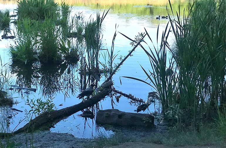 Вечерами люблю прогуляться с собакой до местного озера, которое находится в лесополосе неподалеку. Обычно много людей собирается там в апреле, когда прилетают утки и начинают вить гнезда. Тогда и родители с малышней приходят на живность поглядеть, и влюбленные парочки, и собачники. Самые благодарные зрители – это мамы с детьми. Они всегда приносят с собой какое-то угощение. Вот и на этот раз около озера стояли молодая женщина и крошечная девочка – года 3 не больше. Удивительно, но у них с собой был не вредный для уток хлеб, а мелкие кусочки овощей и зерно в пакетике. Уткам вкусно и полезно, а малышке в радость. Так они развлекались минут 10, пока мы с собакой стояли рядышком и наблюдали за ними. И только одна ворона недовольная была, потому что ей угощения не досталось. Как же так, утки едят, а она – нет. Сначала пернатая просто сидела на дереве и возмущенно каркала, но результата не было. Потом осмелела и спустилась на землю. Дескать, вот она я, полюбуйтесь и дайте зернышек поклевать