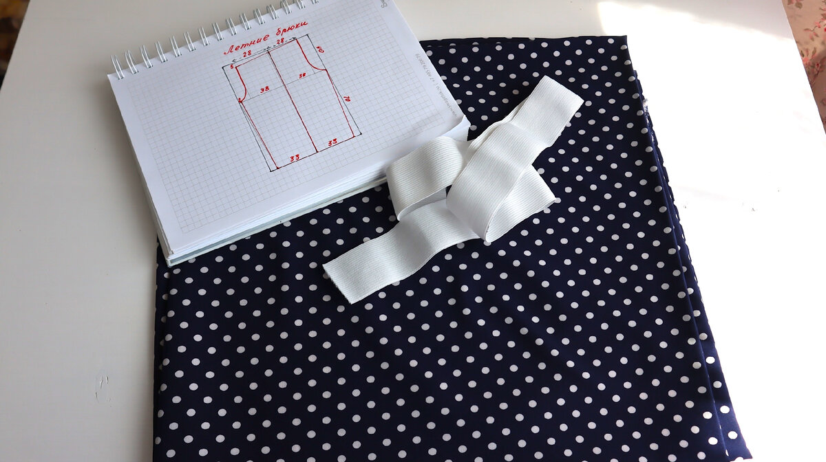 Всем привет! Брюки - самый удобный вид одежды. В жаркие дни многие выбирают легкие широкие брюки, потому что в них комфортно. Самое главное при этом - дышащие ткани и удобный крой. Для летних брюк подойдет лен, хлопок, вискоза, шелк, плательные ткани. Такие брючки-палаццо легко сшить самим, хотя многим кажется, что это сложно. Тем более эта выкройка совсем простая, без молнии, с завышенной талией, на резинке. По этой схеме легко их раскроить. В принципе передняя и задняя части одинаковые, различие лишь в том, что спереди на линии талии надо опустить мерку на 5 см и в углу среднего среза убавить 2 см. На выкройке показана одна половина брюк. Эта выкройка подойдет тем, у кого обхват бедер не больше 110 см. У меня размер 50-52 и брючки получились свободные, думаю, для 54 размера подойдет. Чтобы облегчить шитье, я не стала делать боковые швы. В результате получились две детали, вместо четырех как обычно. Для пошива нужен отрез ткани, шириной 1,50 см, длина берется по вашему росту. У меня