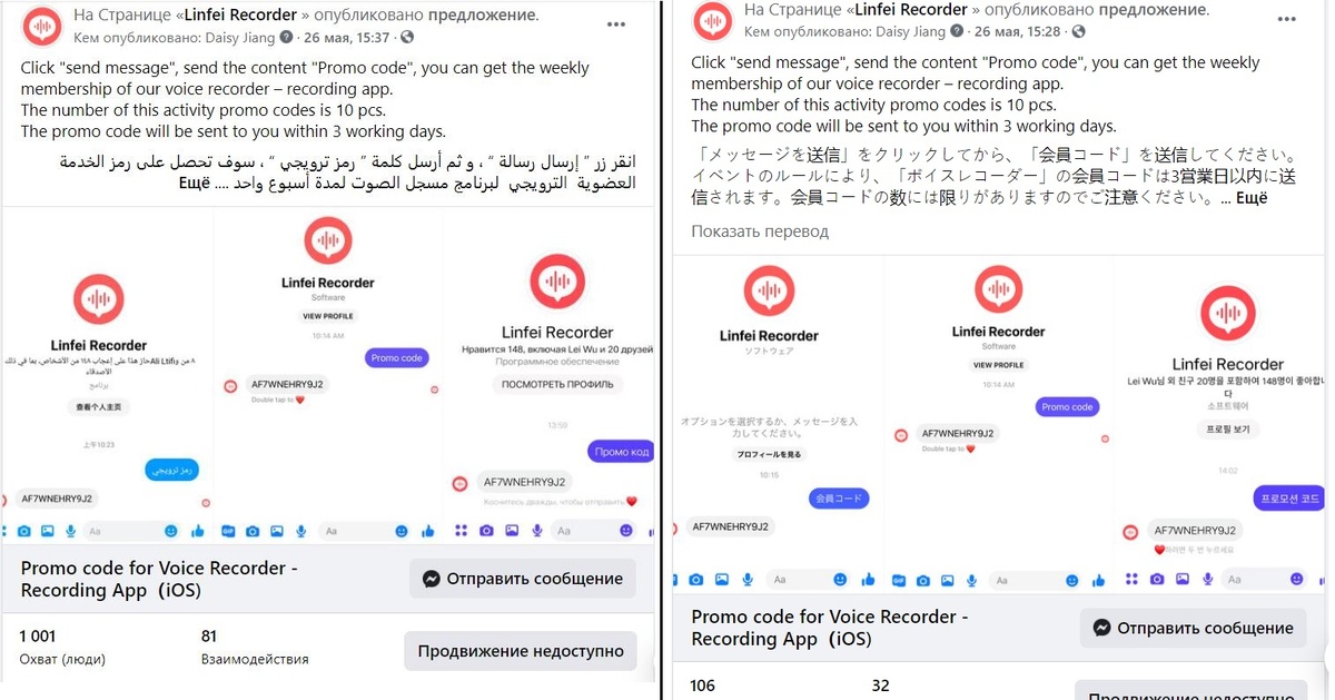 Наша деятельность "Промо код для приложения Диктофон - запись голоса" успешно завершилась на прошлой неделе. Поздравляем всех друзей, которые получили промо коды. Наш "Диктофон Pro - запись голоса " будет обновлен в ближайшее время. На следующей неделе мы проведем деятельность - "Бесплатные промо коды месячного членства для Диктофон Pro - запись голоса". Деятельность продлится до 25 июня. Пожалуйста, с нетерпением ждите нашей деятельности. Заранее спасибо!