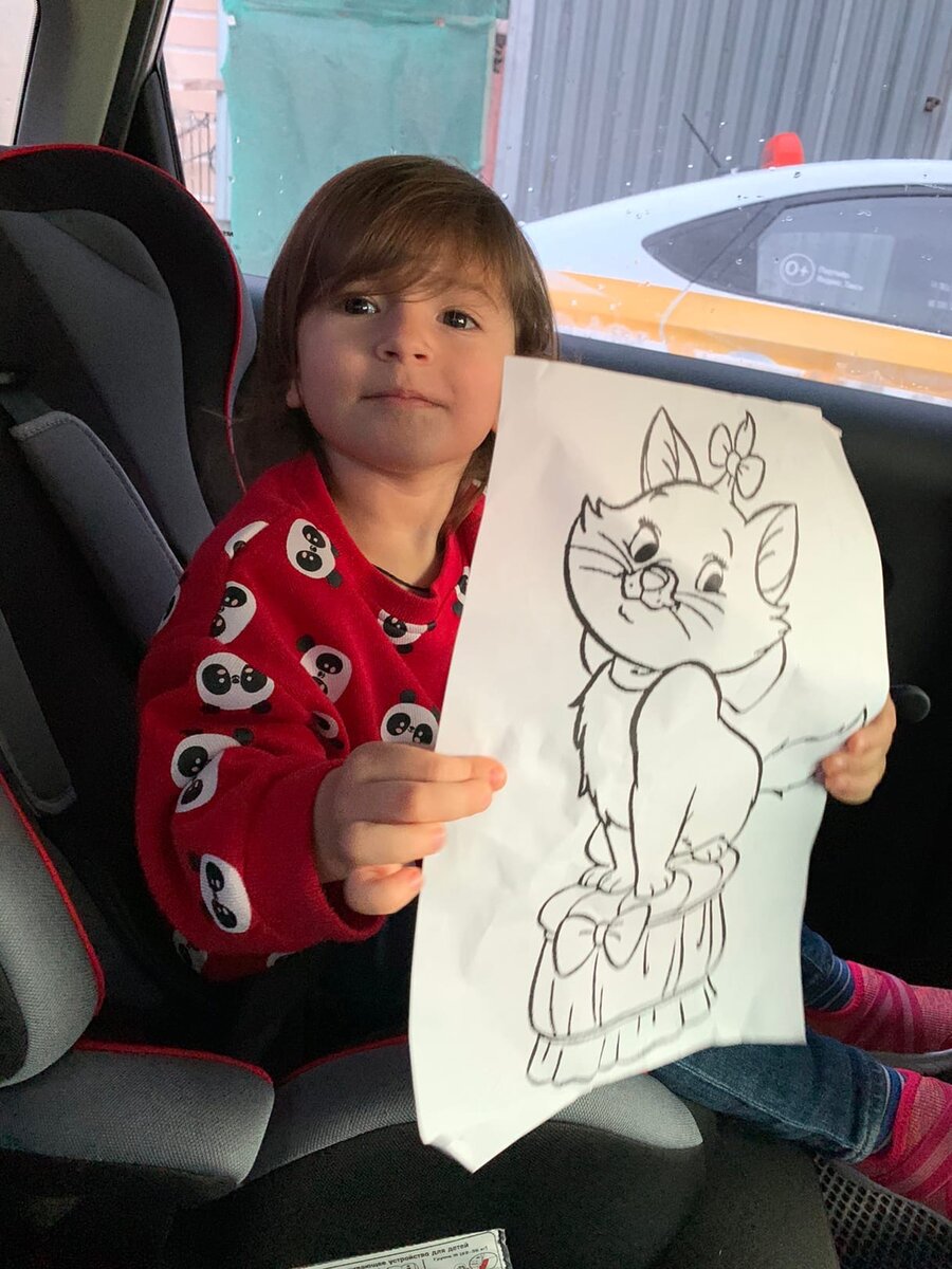 Вчера съездили в МФЦ и поставила ее на первичный учет как иностранного гражданина, по своей прописке. Проинформировать по поводу продления ее нахождения более чем на 90 дней меня там не смогли, нужно обращаться в МВД, а у них часы работы другие, было закрыто их окошко. Но одна из моих читательниц дала мне контакты юриста, который занимается миграционными вопросами. Сегодня мы должны с ней проконсультироваться. Мне кажется, самым лучшим вариантом было бы попробовать продлить наше пребывание до вылета в сентябре, а не оформлять гражданство. Если бы мы только смогли его грамотно обосновать в МВД. Через консульство оформлять гражданство гораздо проще, а здесь его не сразу выдают, а через 3-6 месяцев. Мы к тому времени уже уедем. Пока мы сидели с Катей у окошка работника МФЦ, Катерина рисовала на маленьких бумажках котов и дарила тете. Та в ответ ей подарила раскраску с кошкой, чем привела ребенка в полный восторг. Тут мы в такси уже едем домой, Катя хвастается - вот чего дали) Очень здоров