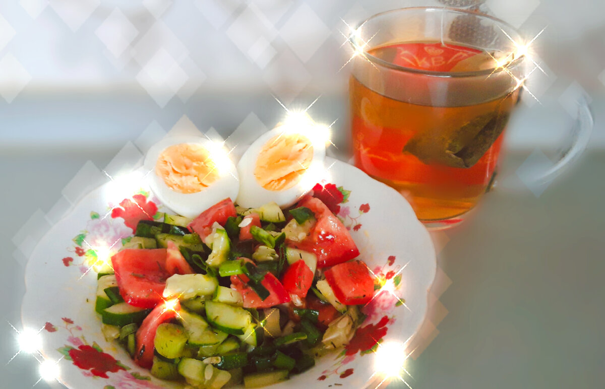 Всем привет! Как всегда на завтрак у меня салатик, ну ещё яичко с зелёным чаем. Как по мне, этого достаточно чтобы наесться) Ещё кусочек хлеба (но хлеб с черносливом), не могу отказаться пока полностью. Добавила фишечку: морская капуста! С ней вообще полезно, очень вкусно и калорий мало. На обед я сварила рис и добавила яйцо опять же вареное. Просто и вкусно. Ой) в холодильнике пирожки с рисом и мясом! Так хочется слопать😫, но я держусь. От этой плохой привычки жрать, надо избавляться. Кажется, вроде голодная, а водички попила, ну вот уже и перехотела кушать. Мозг уже путает сигналы кушать и пить воды просто. Перестраиваться будет тяжело, конечно. Сегодня девиз и вообще на каждый день: беги, шагай, ползи ну хотя бы ляг в сторону своей мечты!😂 Пишите кто, как держится 😁! Всем до встречи.