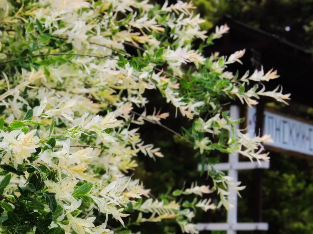 Издалека может показаться, что дерево усыпано нежными цветами — тысячей миниатюрных белоснежных «лилий». Однако, стоит подойти ближе, как становится понятно, что это вовсе не цветы, а пятнистые продолговатые листочки. Знакомьтесь! Ива белая! "Как роса, испаряющаяся с первыми лучами солнца, так листья этой ивы меняют свой окрас с приходом тепла". Именно такой смысл вложили японцы в название ивы: "Белая роса, покрывающая парчу". На японском это звучит, как Хакуру Нишики. Разнообразие оттенков листьев ивы может поразить любого! Бежево-зеленый, салатовый и даже розоватый цвета... Хакиру Никиши - это настоящая пастельная палитра! «Листочки ивы меняют свой цвет в зависимости от времени года. Молодые листья в конце весны действительно имеют необычный белый цвет, а отдельные и вовсе могут быть розовыми, как фламинго. Однако с приходом тепла и повышением температуры, ива начинает преображаться — её листочки окрашиваются в нежно-зеленый цвет, местами все равно сохраняя более светлые участки. В к