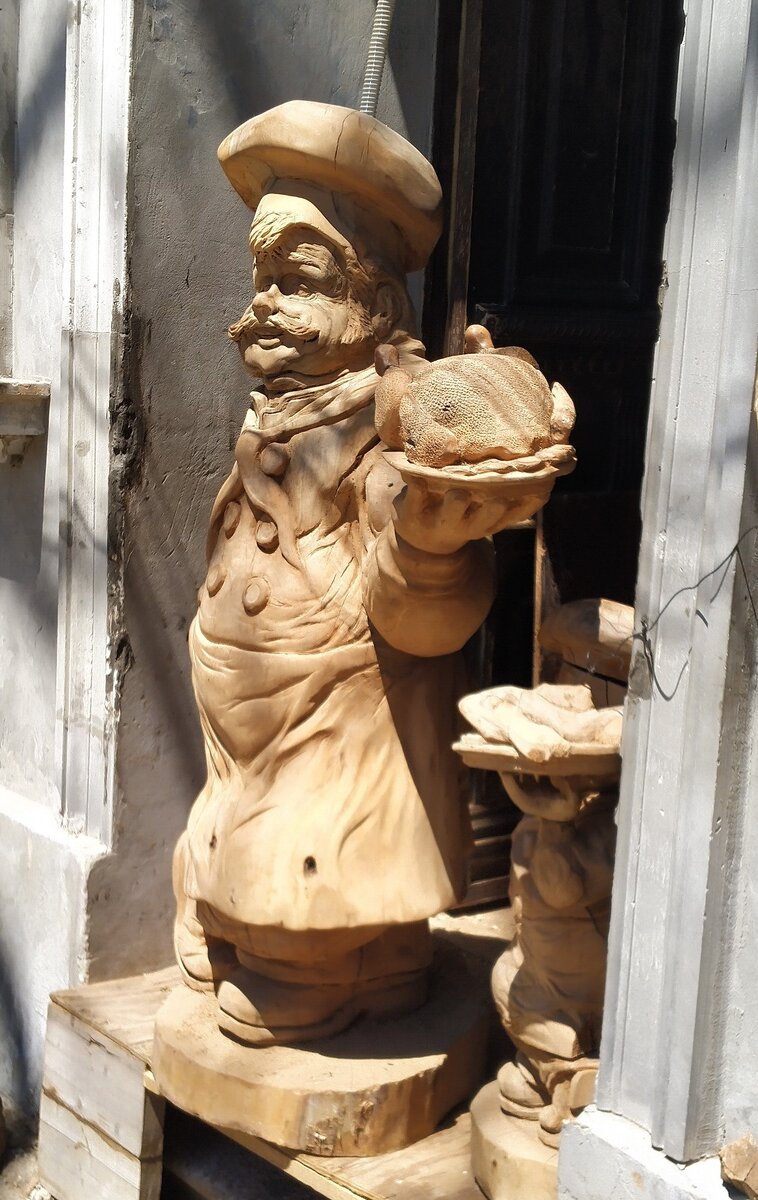 В Симферополе не много достопримечательностей. Возможно это мое мнение, но эти скульптуры стоит посмотреть. Не перевелись в Симферополе Мастера. Подобные деревянные скульптуры стоят еще в нескольких местах города, некоторые уже пришли в негодность , некоторые демонтированы. Найти не сложно, ул. Долгоруковская ( бывшая К. Либнехта), несколько кварталов от центра. Как видно из фотографий, работы просто выставлены у дома, на тротуар. Автор Сергей. Стиль, фотографии и орфография авторские.