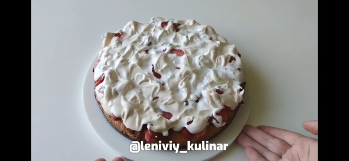 Летний пирог с клубникой и безе 😍 . Гости точно оценят👍