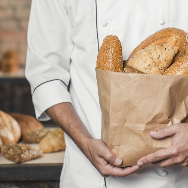 О положительных преимуществах бумажных пакетов известно уже давно. Более того, сегодня отдельное внимание обрели крафт-пакеты с их собственным стилем. Всё большее число крупных производителей переходят к экологичным упаковкам, отдавая предпочтение бумаге. Как и где применяются бумажные пакеты - ответ в сегодняшней статье. Хлеб и кондитерские изделия все чаще упаковывают в бумажные или крафт-пакеты. Такая упаковка выглядит “по-домашнему”, что положительным образом влияет на лояльность покупателей. В элементы упаковки можно также включать различные дополнения, делая её более стильной. К ним относятся: эко-веревки из бумажного шпагата, различные стикеры, ленты. Для упаковки хлеба и кондитерских изделий чаще всего используются однослойные бумажные пакеты с плоским дном. Пакеты с V-образным (плоским) дном - отличная индивидуальная упаковка для хлебобулочной и кондитерской продукции. Такие пакеты обладают хорошей воздухопроницаемостью, при этом сохраняют свежий вид и температуру продукции. Р