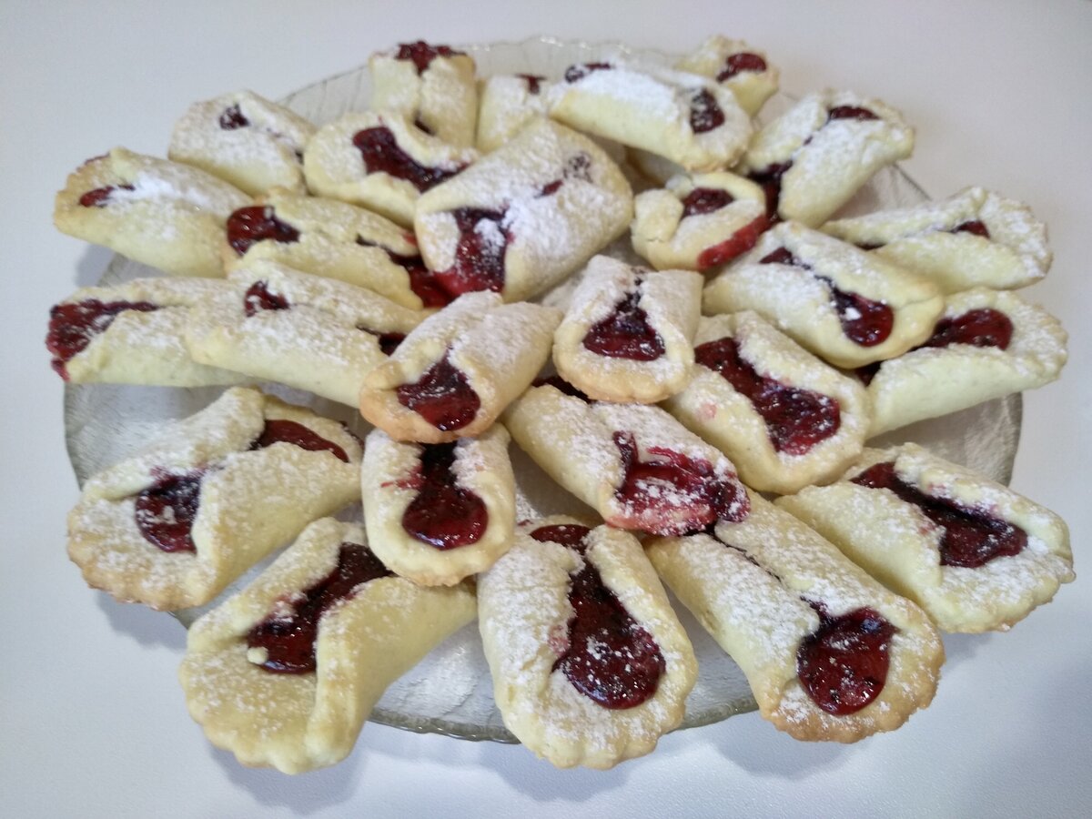 Всем доброго дня! Сегодня приготовим песочное, рассыпчатое печенье с джемом! В миску вбиваем 1 крупное яйцо, добавляем щепотку соли, постепенно всыпаем 60 г сахара и хорошо размешаем. В яичную смесь добавляем щепотку ванили, 50 г мягкого сливочного масла и размешаем всё до однородности. Всыпаем 200 г муки,0,5 ч л разрыхлителя, замешиваем мягкое, не липнущее к рукам тесто. Тесто месить долго не надо, собрали в шар и достаточно. Перекладываем в пакет и отправляем в холодильник на 30 минут. Тесто отдохнуло, раскатываем в пласт толщиной 3-4 мм и вырезаем кружочки диаметром 6-7 см. Обрезки теста собираем в шар и отправляем в холодильник на время пока сформуем первую партию печенья. На середину каждого кружочка выкладываем начинку - густой джем или варенье. Края с двух сторон подворачиваем к центру, слегка прижимаем по центру и с помощью ножа или лопатки переносим сформованное печенье на противень. Ставим выпекаться в духовку разогретую до 200 градусов на 12-15 минут. Готовое печенье снима