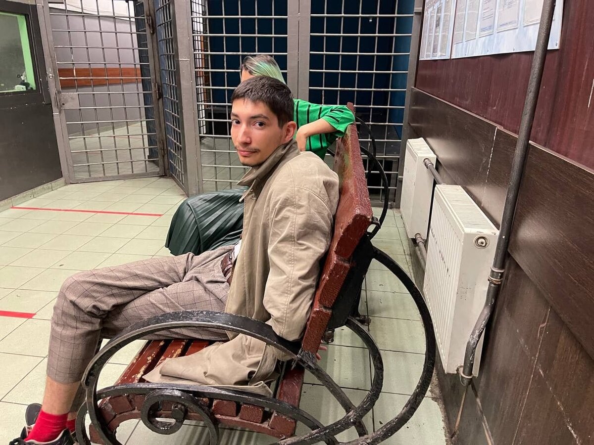 Кстати, это не первый закидон гражданина Крисевича, ранее он устраивал акцию у здания ФСБ в образе Христа (отсидел 15 суток), ещё на Старом Арбате он забрался в сферу из колючей проволоки в робе заключенного и выкрикивал политические лозунги (арестован на 14 суток), ещё десятку ему дали в начале мая за несогласованную выставку картин в Питере.