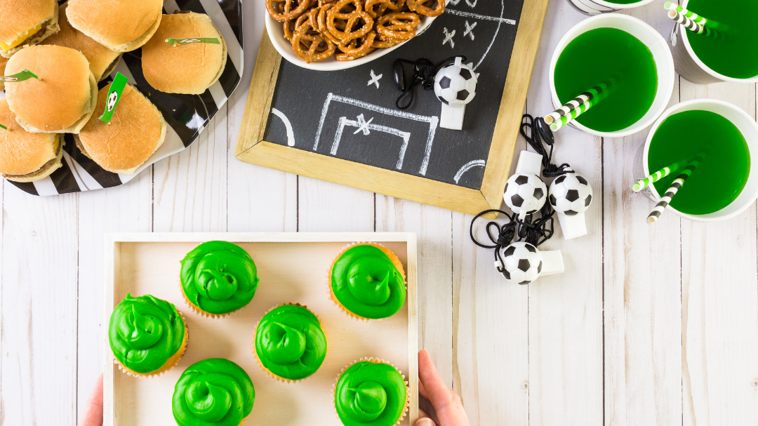 Игра миллионов — это футбол. Хотя бы раз в жизни каждый видел матч и болел за любимых спортсменов. Вечеринка в стиле футбола понравится не только мужскому полу, но и женскому. Не зря же на трибунах так много болельщиц! Сегодня мы расскажем, как устроить весёлый праздник для фанатов этой великой игры. Оформление Когда намечается футбольная вечеринка, оформление можно сделать в двух вариантах: имитируя игровое поле или стадион. Важно также учитывать, болеет ли виновник торжества за определённую команду — от этого зависят используемые цвета. Обычно для такого мероприятия ориентируются на белый, зелёный и чёрный. Можно также задействовать триколор, ведь часто люди болеют исключительно за сборную страны. Что может понадобиться: Если большинство присутствующих болеют за одну команду, можно добавить её символику в интерьер. Достаточно повесить на стену фанатский шарф или подготовить для гостей футболки с эмблемой. Конкурсы и развлечения Самое простое развлечение — викторина с вопросами о футб