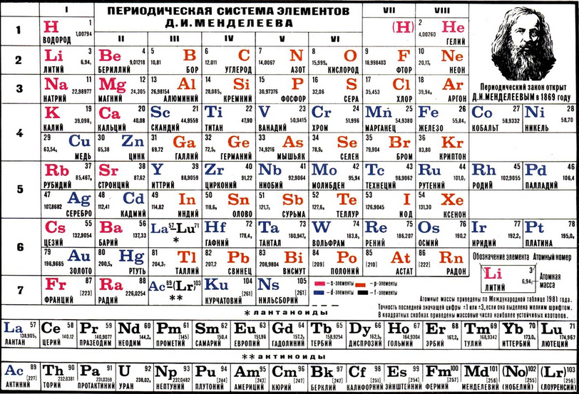 Когда вы включаете радио в своем автомобиле, говорите ли вы слова благодарности Александру Попову? Этот русский физик был первым, кто представил планы устройства, использующего радиоволны. С момента представления этих планов 7 мая 1895 года Попов считается изобретателем радио в Восточной Европе, а в Советском Союзе 7 мая стало еще одним первомайским праздником - Днем радио*. Что еще принесли предприимчивые русские остальному миру? Телевидение Устали от радио? Вы должны поблагодарить русских за следующую большую вещь в сфере развлечений: Телевидение. В частности, Владимира Зворыкина, который в 1928 году получил патент на катодно-лучевые трубки. Он приехал в США из России после Первой мировой войны и представил свое изобретение руководству компании Westinghouse. Руководство не впечатлилось, и Зворыкину было сказано "посвятить свое время более полезным делам". К счастью для нас, он продолжил работу над своими трубками. Таблица химических элементов Если вы когда-нибудь изучали химию, то на