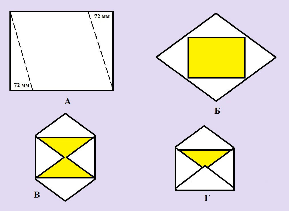 1) Отметьте самый центр листа точкой, измерив расстояние до нее с помощью линейки. 2) Сложите левую и правую сторону внутрь, чтобы углы касались центральной точки. 3) Затем подогните нижнюю сторону вверх так, чтобы она закрывала центр и ее можно было приклеить к двум уже подогнутым углам. 4) Нанесите клей на нижние стороны конверта, как показано на фото. Вы можете также воспользоваться двусторонним скотчем. 5) Подогните верхний угол вниз. Конверт готов! Этот конверт можно сделать всего за пару минут. Он основан на простом принципе сложения углов.