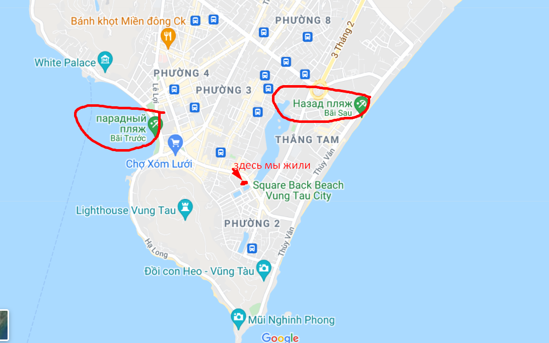 Здравствуйте, дорогие наши читатели! Я продолжаю рассказывать о нашей пятой зимовке в 2016-2017 годах. Тогда мы 2 месяца прожили в Паттайе и 2 месяца - во вьетнамском городе Вунгтау. В прошлой статье я рассказала об одном из двух основных пляжей Вунгтау, о Переднем пляже. А сегодня расскажу о Заднем пляже - Back Beach. Это очень длинный, широкий и красивый пляж. В солнечную погоду он выглядит не хуже пляжей какого-нибудь Лос-Анджелеса или Рио-де-Жанейро. Но, так как здесь открытое Южно-Китайское море, то на этом пляже обычно очень сильные волны. Поэтому купаться и плавать здесь проблематично. Ладно плавать, но и загорать тут тоже не комфортно. Почему? Вроде бы и лежаки с зонтами есть. Раздевайся и загорай. Но на этом пляже всегда очень много местных, а европейцев - раз, два и обчелся. Вьетнамцы не любят загорать и даже если плещутся в воде у берега, то делают они это в одежде. Поэтому нам было как-то некомфортно раздеваться до купальника в то время, как вокруг все люди были одеты