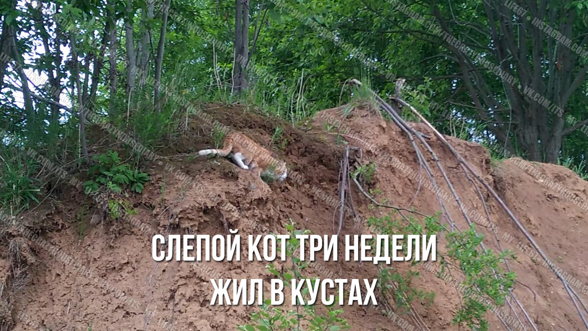 ㅤМимо ходили люди, и никому не было до него дела. Вчера утром нам позвонила неравнодушная девушка, которая узнала об этой истории. ㅤОна пыталась хотя бы покормить бедолагу, но он был настолько напуган, что убегал, как только слышал шаги или голос. Бежал напролом, врезаясь в бордюры и падая в канавы. Поймать его было почти невозможно. ㅤК тому моменту, как я прибыла на место, котик спрятался в роще на склоне. Она заросла травой, и повсюду лежали сухие ветки. Преследовать его на этой территории было бесполезно - малейший шум, и старичок затихарился бы совсем. Найти котоловку он не смог бы, так как плохо чуял и мог обнаружить еду только случайно. Но оставалась надежда, что он вернётся на то место, где любил отдыхать на солнышке. ㅤСпустя примерно полчаса ожидания котик показался снова. Ещё около полутора часов пришлось бесшумно сопровождать его на расстоянии, чтобы не пропустить момент, когда он будет спускаться на парковку. Он очень долго выбирал, где спуститься, блудил в траве и кустах. З