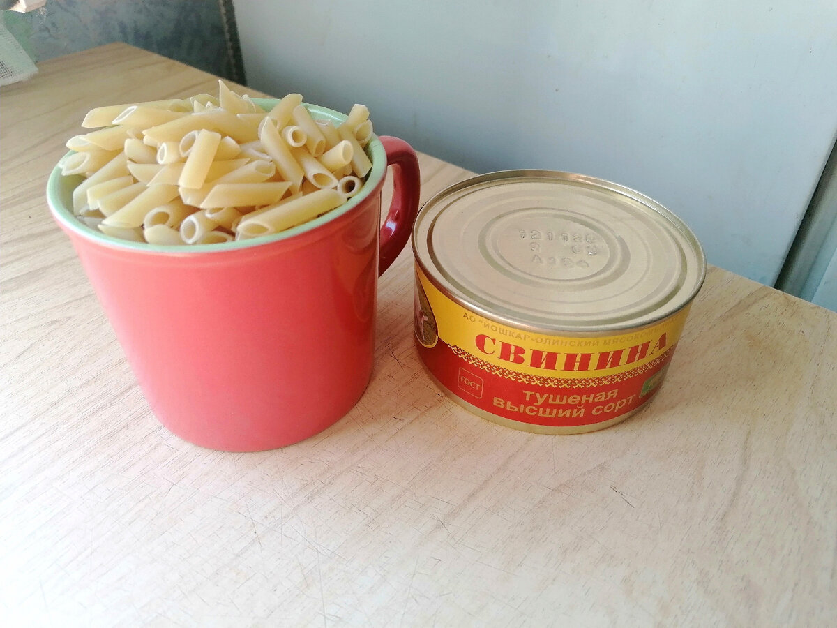Макароны с тушёнкой я готовлю в крайнем случае когда день очень загружен делами и времени на готовку просто нет. Для приготовления нам понадобится: Макароны- 300гр Тушёнка-1 банка. Так же по желанию можно добавить лук, морковь или любые другие овощи. 1. В подсоленую кипящую воду высыпаем макароны и добавляем 2ст.ложки растительного масла, чтобы макароны не слиплись после приготовления. Варим до готовности. 2. На разогретую сковороду выкладываем тушёнка, равномерно распределяем по сковороде и греем под крышкой 5-7минут. Далее выкладываем готовые макароны к разогретой тушёнке, всё хорошо перемешиваем. Готово!