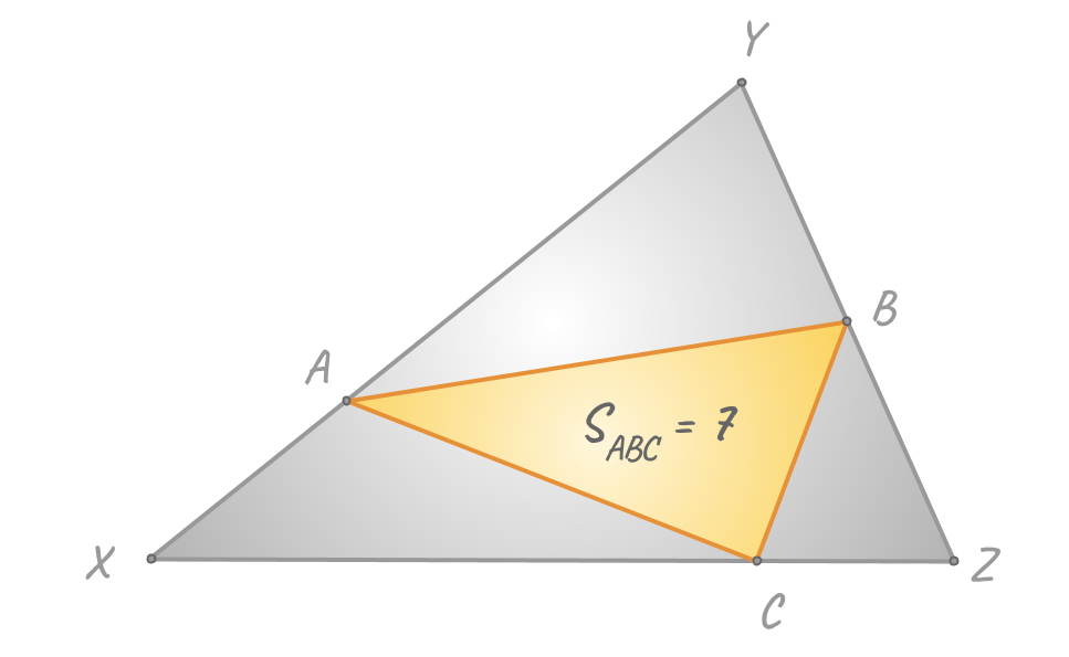 Определите площадь △XYZ, если площадь △ABC равна 7.