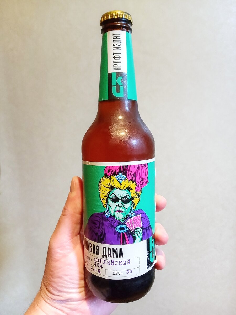 Где-то с год назад пивной монстр AB InBev Efes выпустил псевдокрафтовую линейку пива "Крафт Издат". Прошлым летом мне удалось попробовать пшеничку "ДостоЭЛЬский", а остальное пиво из этой серии как-то не попадалось. А тут на днях, проходя мимо "Магнита", решил не проходить мимо, а зайти и посмотреть - вдруг чего интересное из пенного у них имеется в наличии. Ну и нашлась там "ИПАвая Дама", которую я и взял на пробу. Мадам кислотной расцветочки, судя по всему, символизирует старую графиню из "Пиковой дамы". Художник, нарисовавший этикетку, видимо, находился в тот момент под какими-то сильнодействующими веществами. Впрочем, нас больше интересует, что внутри бутылки, а не снаружи. А внутри нам обещают английский IPA: Светлый янтарный эль, сваренный в английском стиле. ИПАвая Дама раскроет тайну беспроигрышной комбинации: яркий хвойный аромат Amarillo, мягкая сладость солодово-карамельной основы и освежающая приятная горчинка во вкусе. Тройка, семерка, туз. Звучит интересно. Посмотрим, чт