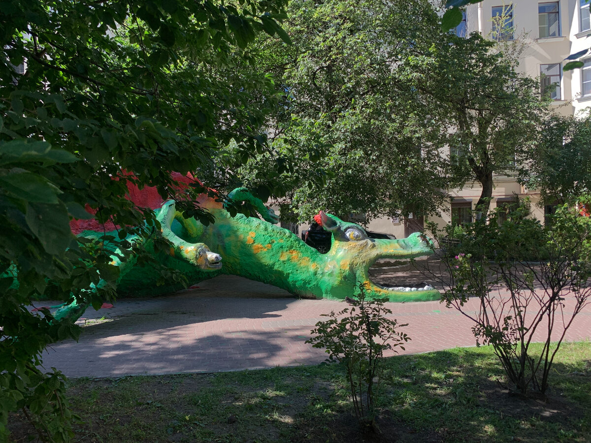 Раньше большинство дворов Петербурга были открыты, а сами дома проектировались таким образом, чтобы через дворы можно было сократить путь. Сейчас найти длинный маршрут из проходных дворов в центре довольно проблематично, так как почти все они закрыты. Однако на Васильевском острове он есть: проходными дворами можно пройти практически весь остров от метро до Севкабеля. Здесь не понадобятся ни универсальные ключи, ни коды. Как это сделать, что интересного встретится на пути и подробная карта - в этом посте. От метро "Василеостровская" нужно пройти по пешеходной улице до первого дома маршрута - 7-я линия, 26. В этом дворе находится скульптура "Змей Горыныч". Она находится тут ещё с 1980-х годов, теперь это своеобразная местная достопримечательность. Оказавшись на 8-9 линии, нужно будет пройти по направлению к Среднему проспекту до дома №34. Это бывший доходный дом Лидерс-Веймарн в стиле модерн, где теперь бизнес-центр. Внутренний двор превращён в атриум. Проходим его насквозь и выходим к