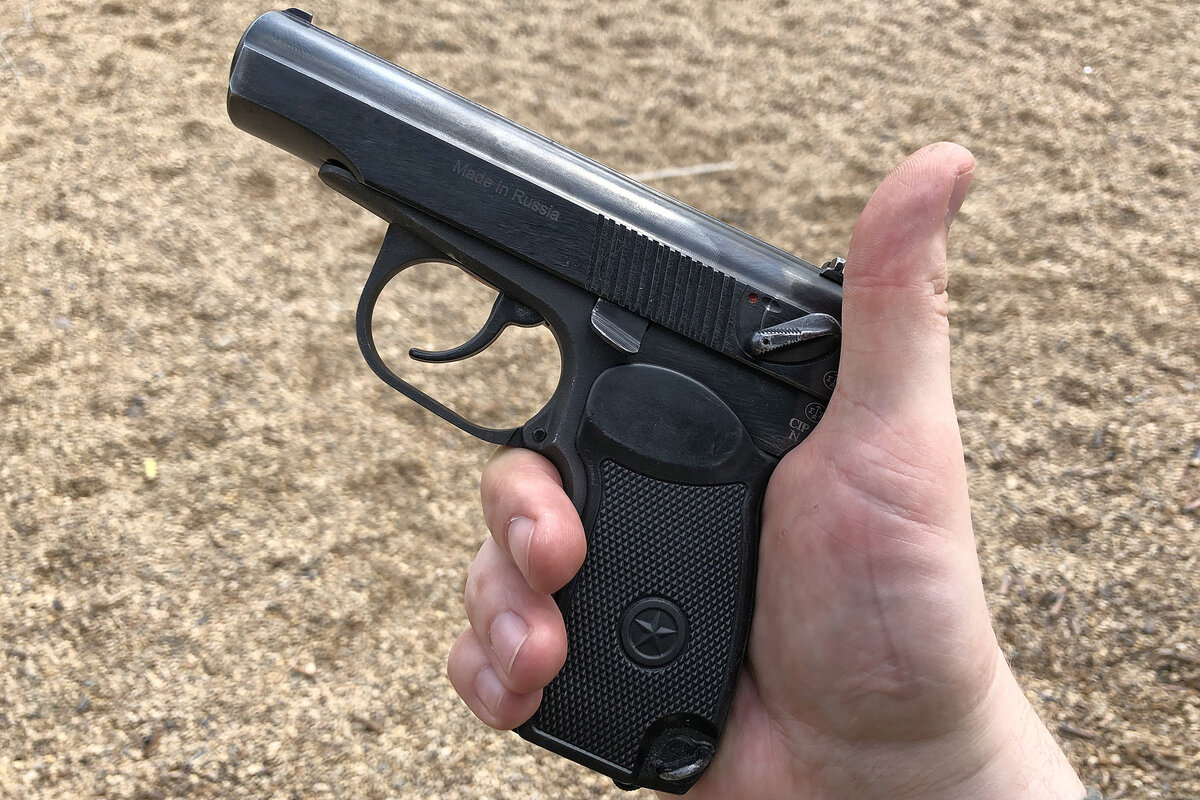 Про Пистолет Макарова и свое отношение к нему я уже рассказывал тут. Это самый распространённый пистолет на территории РФ, казалось бы - о нем должно быть известно абсолютно все. НО, когда я читаю ваши комментарии впечатление у меня создается совсем другое. Собственно, из недавнего: "ПМ чисто технически не может делать 2 выстрела в секунду." На своем чиже я прекрасно знаю сколько времени мне понадобиться на 6 выстрелов из спортивной кобуры: Первый выстрел я сделаю за 1,2 сек и последующие со сплитом в 0,13 - то есть я уложусь от 1,85 до 2 сек (это с запасом) на всю серию. А что будет с ПМ? Головой я понимаю, что серия из него будет быстрее чем два выстрела в секунду, но поскольку предыдущий раз я стрелял из такого агрегата года полтора назад, то спрогнозировать точно результат не могу. По скольку магазин выделили мне один, то все будет снято с одного дубля - права на ошибку у меня нет =) Первый выстрел по машине "Бьянчи" чтобы понять куда летит. Мне показалось, что пистолет