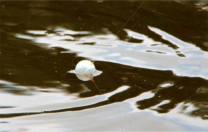 От залитого количества воды будет зависеть вес оснастки, и, естественно, дальность заброса. В момент касания поплавком поверхности воды, будет слышен громкий шлепок. Рыба от шума расплывется (в некоторых случаях наоборот), но по прошествии некоторого времени обратно приплывет к месту лова.