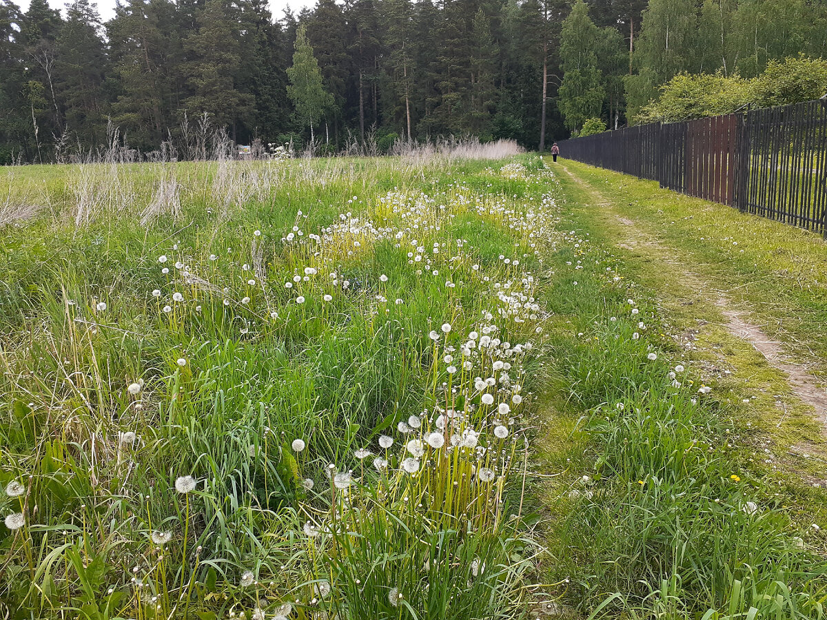 Идем с собакой в лес. Вдоль тропинки - белые головы одуванчиков. Только недавно одуванчики цвели и вот уже готовы разлететься пушинками по белому свету. Идем с собакой Кирой в лес. Кира валяется :) Побегает. И снова валяется. Комары достают. В лесу отцвела яблоня. Уже яблочки появились. На опушке леса разрослась сныть. Возвращаемся домой. Вечером пошли гулять. Видели радугу! Говорят, надо загадывать желание, но я опять забыла :) Женщина из нашего подъезда увидела меня с собакой и сказала: "В этом что-то есть! Хочешь, не хочешь, а гулять идешь. А потом крепко спишь и никакой тебе бессонницы." :) Собака - это полезно! :)