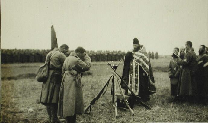 Даже во время братоубийственной мясорубки Гражданской войны русские солдаты по ту и другую сторону фронтов продолжали молиться Богу. В Белой армии это делали открыто, и молебен перед полком служил священник. Как написал в мемуарах «Дроздовцы в огне» генерал-майор Антон Васильевич Туртул: «может быть, молилась тогда с нами в смертной тьме вся распятая Россия».