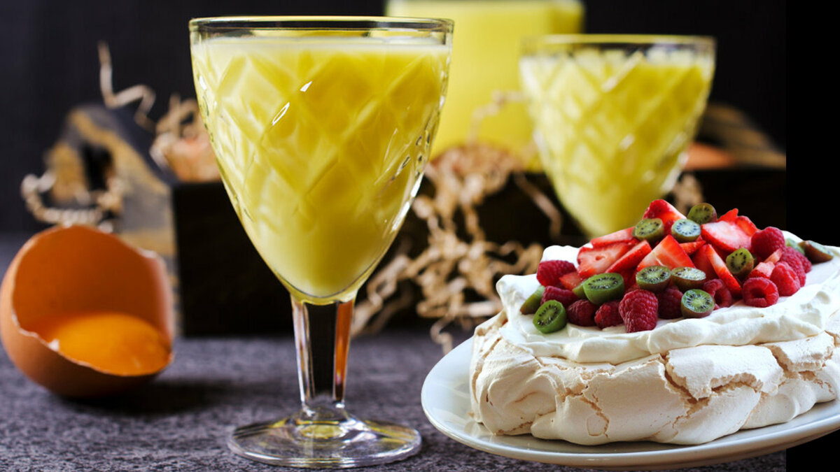 Доброго дня и хорошего настроения, дорогие читатели! В моем понимании, есть на кухне блюда-компаньоны, которые удобно готовить одновременно. Это происходит в тех случаях, когда рецепты похожи по составу или же в один рецепт входят исключительно белки яиц, а в другой – только желтки. Взгляните на фото. Видите, как красиво они смотрятся вместе – белоснежный торт и цыплячье-желтый напиток. Это прекрасное сочетание для легкого летнего приема. 2 этих блюда станут украшением десертного стола. Для сравнения предлагаю посмотреть составы этих 2-х рецептов: Легко заметить, что здесь весьма широкое пересечение по ингредиентам: яйца, сахар и сливки. Сливки можно также добавить при приготовлении ликера, есть такие варианты, хотя в классический рецепт они и не входят. А можно сделать безалкогольный гоголь-моголь или эгг-ног, что тоже очень вкусно. В этом случае, бренди или коньяк заменяют сливками. Рецепты несколько условны, я специально свела их к 6 яйцам. Но, разумеется, пропорции ингредиентов мо