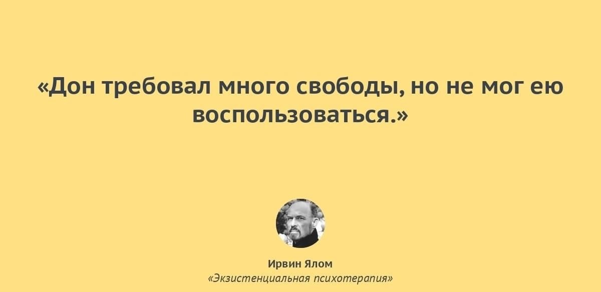 Ирвин Ялом , великий психолог нашего времени, в студенческие годы определялся с направлением психотерапии в котором продолжить свою реализацию. В те времена в Америке было два основных направления: психоаналитическое и медицинское (психиатрия). Между ними он и выбирал. Но не то и не другое его в полной мере не устраивали. И вот он прочитал, только вышедшую книгу Ролло Мэй «Экзистенция» и именно эта книга показала Ирвину Ялому третий путь - экзистенциальную психотерапию. Ирвин Ялом потом прославился, как один из основателей экзистенциальной и групповой психотерапия. По его учебникам учатся студенты психологи и я в своё время изучал два из них - «Групповая психотерапия» и «Экзистенциальная психотерапия». Но широкая слава к нему пришла как к популизатору психологии благодаря его художественным книгам, в которых он описывал жизнь психологов, философов и врачей. И для многих моих коллег и для меня в частности, эти книги стали одним из первых приглашением в профессию. А теперь самое ин