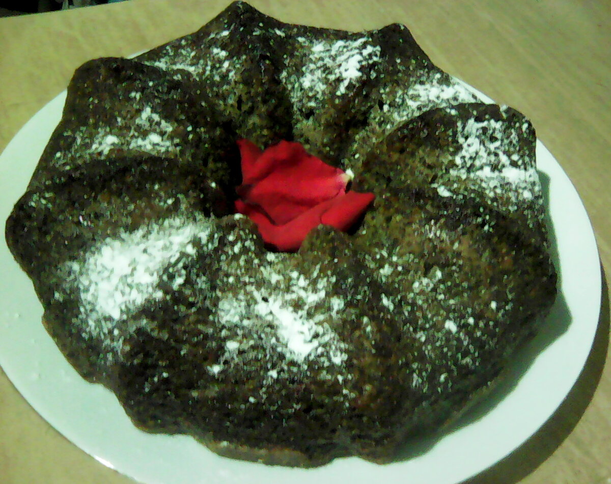 Доброго времени суток! Сегодня пеку пирог с маком для своих сластён. Приглашаю всех присоединится к процессу приготовления. Что нужно : для начинки : Приготовление : Заливаю мак стаканом кипятка и даю набухнуть минут 20. Лишнюю воду сливаю и смешиваю мак с сахаром. Яйца растираю с сахаром и сметаной. Добавляю муку, соду, мелко рубленные орехи, маковую массу. Всё хорошо вымешиваю, чтобы тесто стало пышным. Взбивать лучше венчиком, а не миксером, пирог получается пышнее. Выливаю тесто в форму, у меня силиконовая. Если обычная,рекомендую застелить пергаментом, смазанным маслом. Выпекаю в разогретой духовке до 180°С 1 час. Пирог должен быть тёмно - коричневого цвета. Сверху посыпаю пудрой. По желанию можно разрезать пирог вдоль на два коржа и прослоить кремом. Например : 100 г сливочного масла взбить с 1/2 банки сгущёнки до густоты. Охладить и промазать 1 часть этим кремом,
